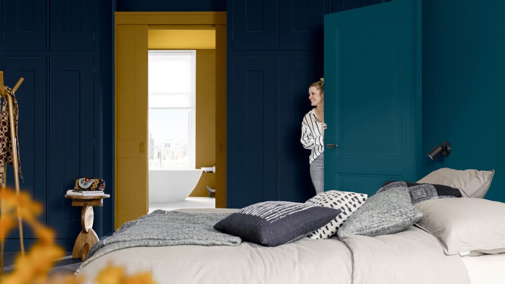 Nieuw voor 2025 is de toevoeging van rijkere accenten zoals nachtblauw, dieppaarse tinten en (mosterd)geel. Deze krachtige kleuren worden gebruikt om een statement te maken in accessoires, kunst of zelfs een accentmuur. Ze voegen diepte en karakter toe aan een verder rustige basis.